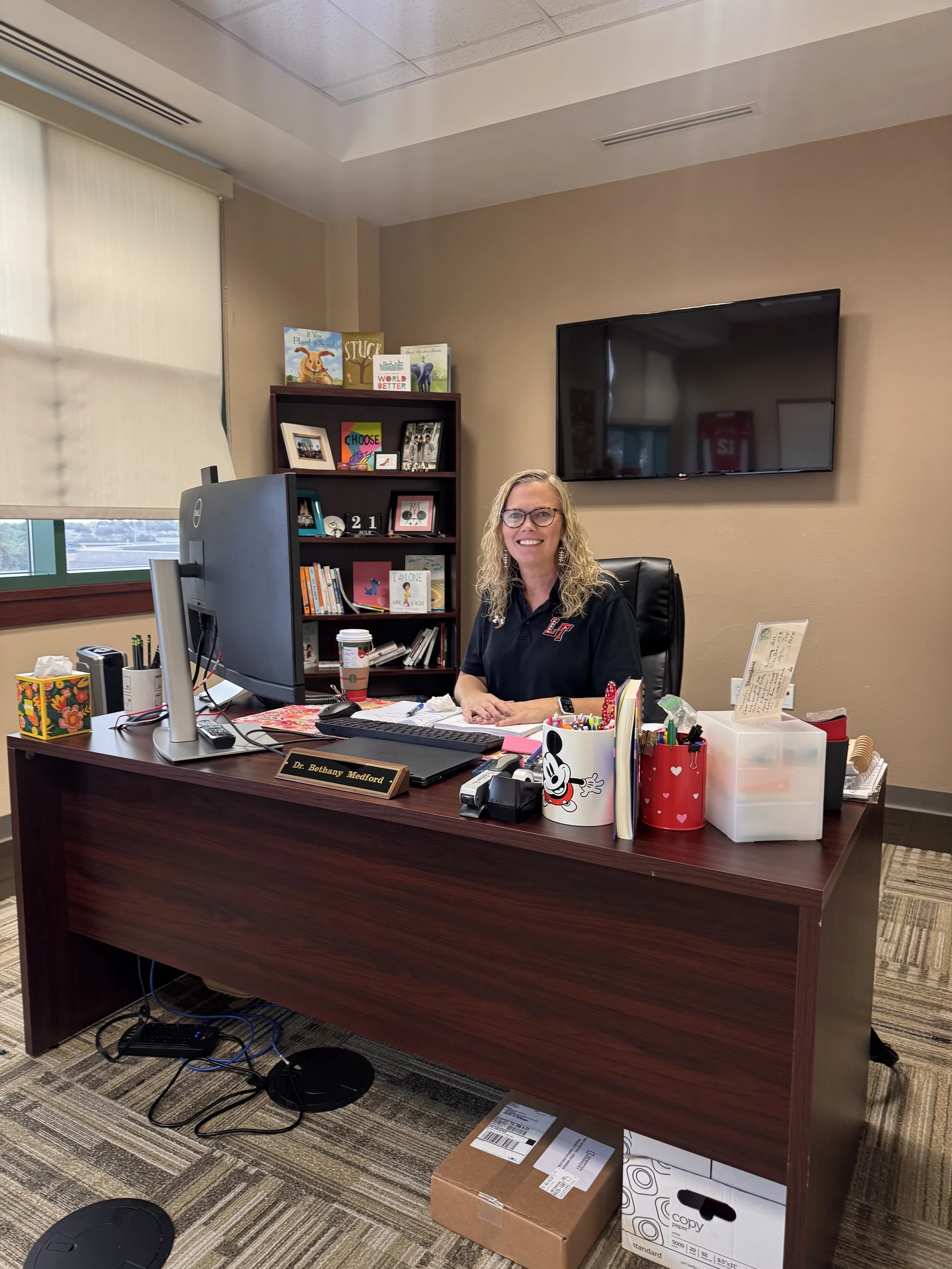 Dr. Bethany Medford in her office at Lake Travis ISD.